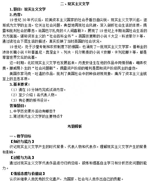 2018下半年高中历史教师资格证面试真题:现代主义文学
