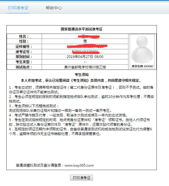 5.报名成功后,请仔细阅读页面提示并在规定的时间内打印准考证。